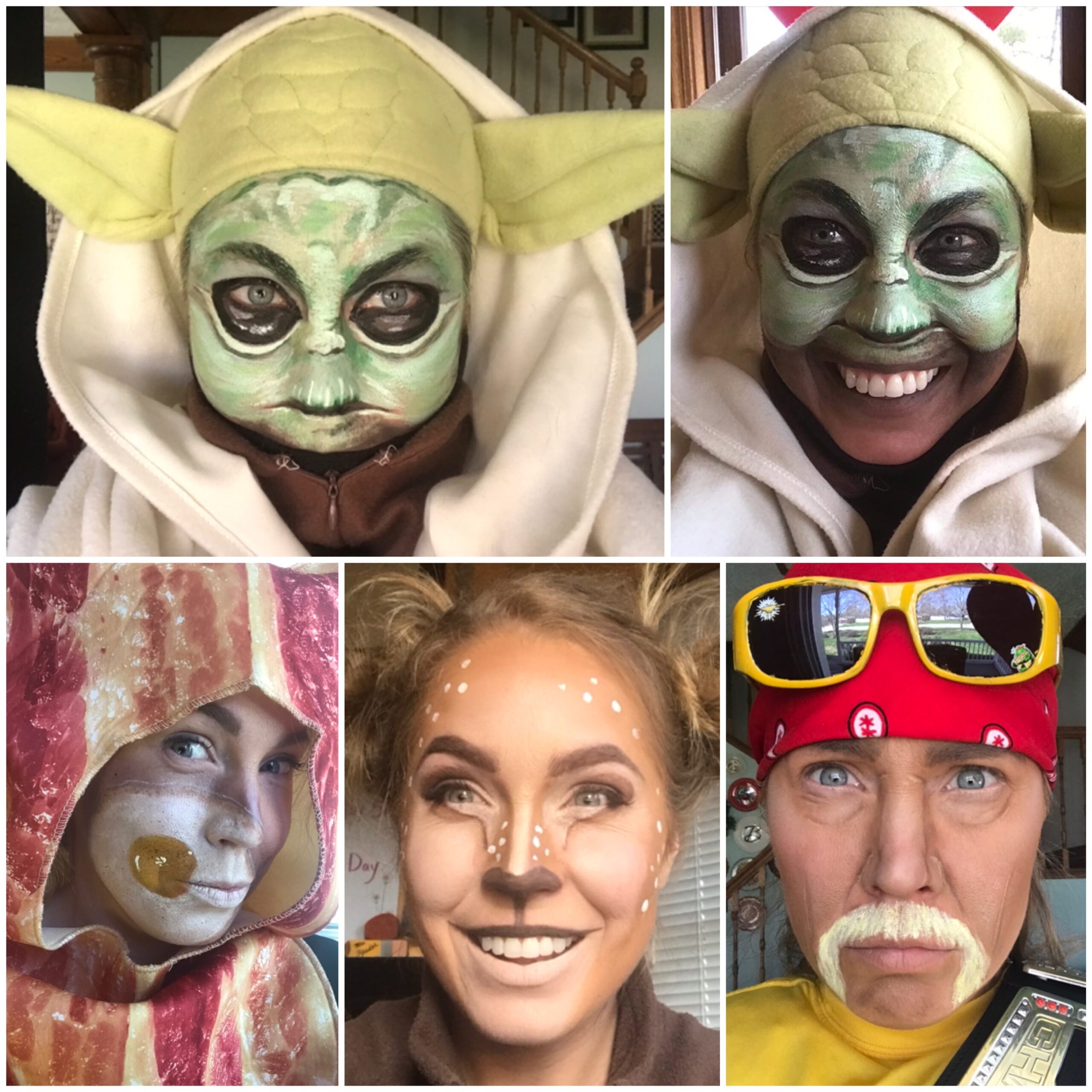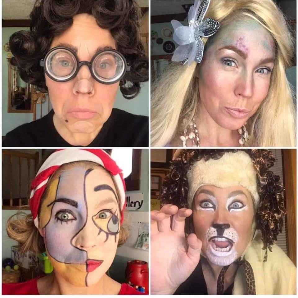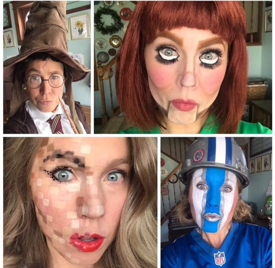 Friends and neighbors gave her more costumes and with some creative makeup, she came to online class as Hulk Hogan, Yoda, a Picasso painting, and a ventriloquist’s dummy, among many other fun characters.