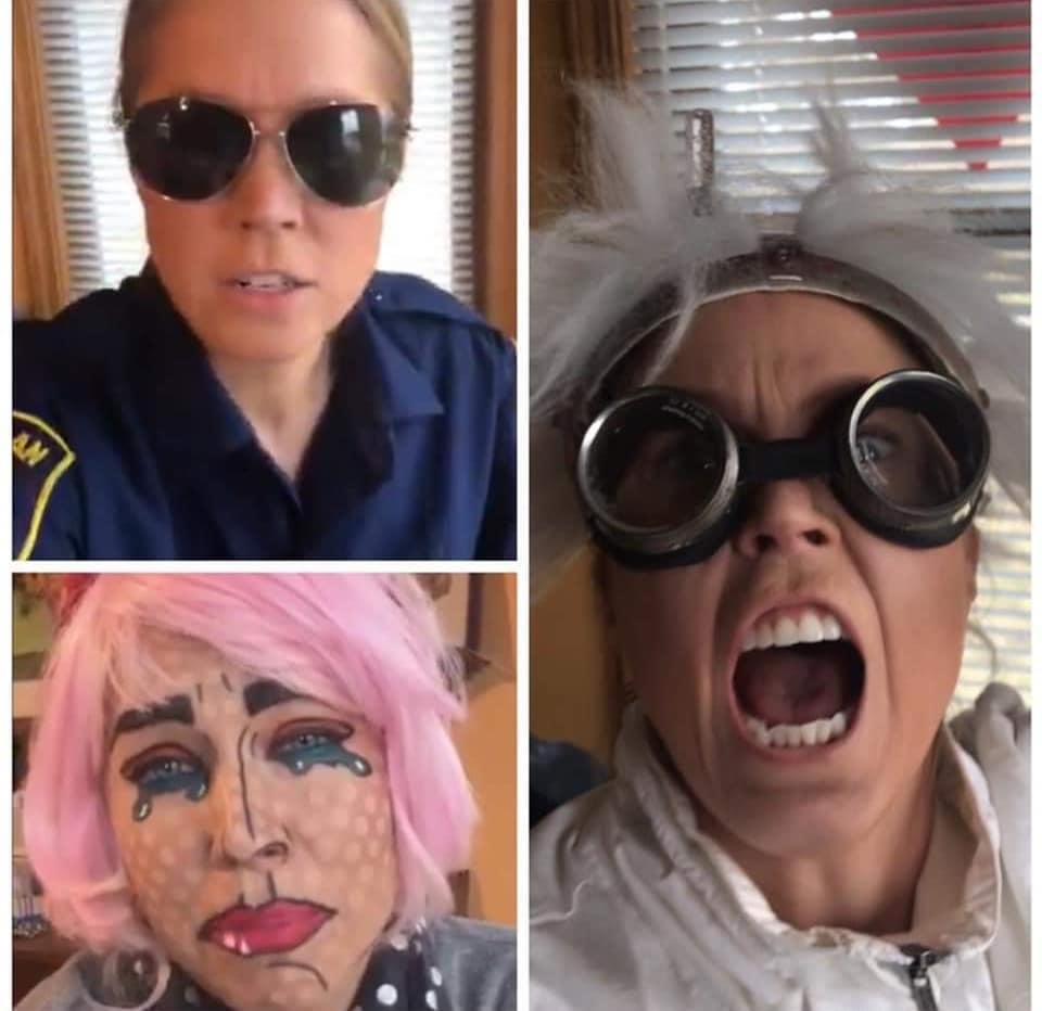 Heidi appeared in costume for Zoom teaching videos for her fifth-seventh graders every day during the pandemic.