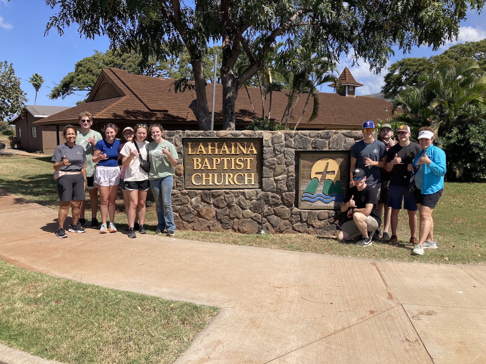 On Thursday we traveled to Lahaina, Maui, once the capital of the Hawaiian Kingdom, now devastated by the wildfires and where approximately 100 people died. Six of our team members worked with Samaritan’s Purse to help with work in the construction of two separate houses for displaced families at locations where houses formerly stood. The remaining twelve members served Lahaina Baptist Church by doing a significant amount of yard work and other facility maintenance projects. Our support amounted to roughly forty hours of work. The help was crucial for Pastor Erik, who has been at the church for less than a year and is working hard to rebuild the church community as well as his own home after the fires. Pastor Erik told us the story of the day of the fire, how he prayed, and the Lord spared his church building, despite every building around burning to the ground. Pastor Erik showed us the two tall trees at the entrance path to the church, charred, but standing. After our long workday, the Brown family hosted our team for a Bible study, fellowship, and dinner.