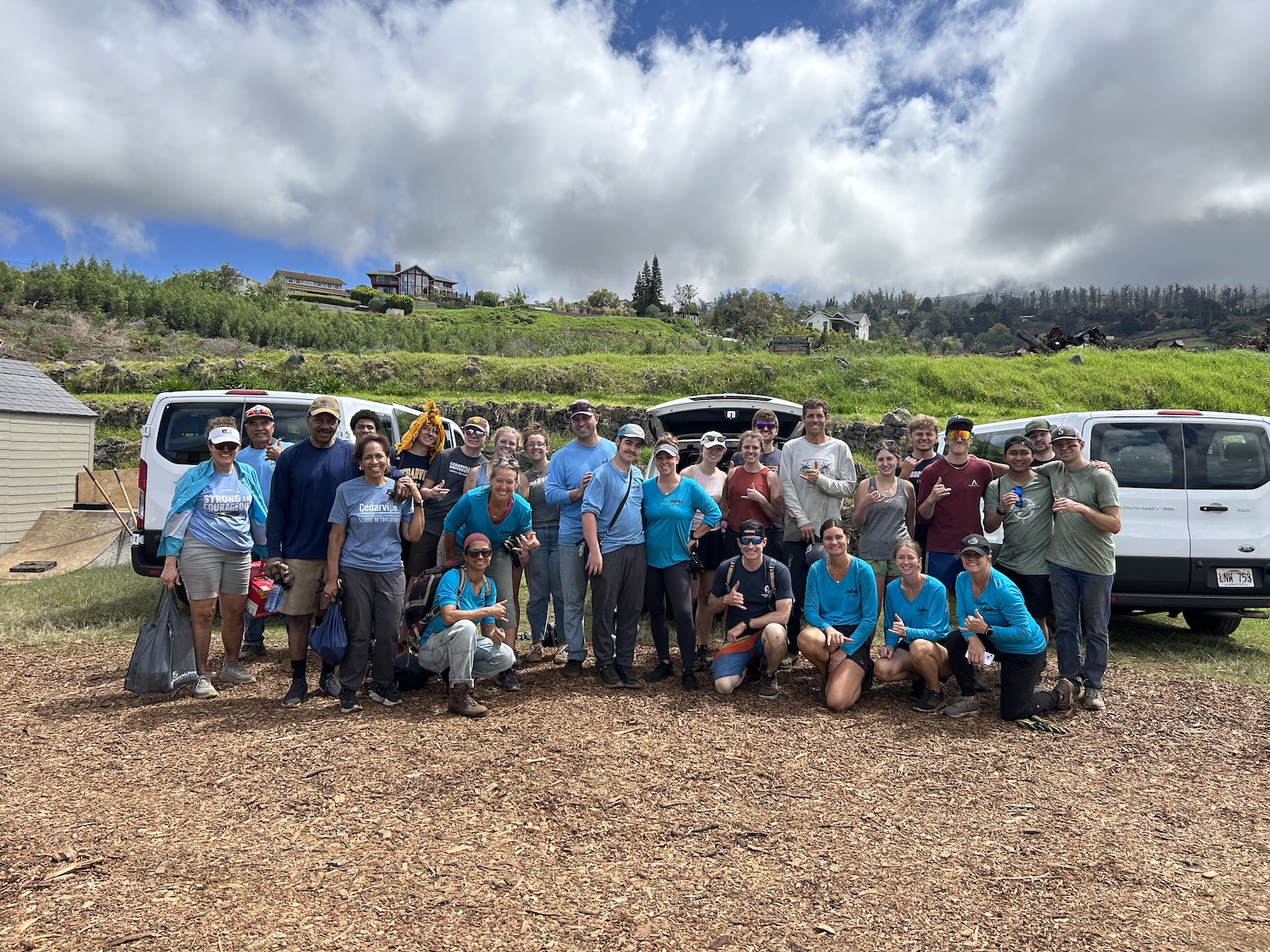 On Friday, our team traveled to Kula, where we completed more fire relief work. Many people on the mainland are not aware that on August 8, 2023, there were four separate fires on the island of Maui. Lahaina has received the most attention due to the mass devastation and loss of life. Another fire location, Kula, was a location where 23 homes and over 500 structures burned down. In Kula, there has been minimal county, state, or federal aid, and there is still so much work that needs to be done in the community. The Community has banded together in a group called Malama Kula to recover together. In Kula, our team spent a full day pulling weeds, cutting down invasive tree species (Australian Wattle), hauling logs, and planting new grass. These efforts are vital for preventing future fires, minimizing soil erosion and damage from the various island’s frequent rains, and supporting the reintroduction of native species. Our day ended at Living Way Church with a traditional Hawaiian Haka and Aloha (goodbye) from Pastor Greg and a time of reflection on how we had seen the Lord work throughout the trip.