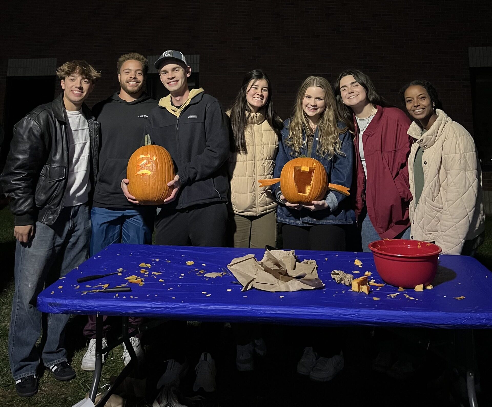 A group of my friends. We battled it out in a guy vs. girl pumpkin-carving contest at an ALT Night on campus.